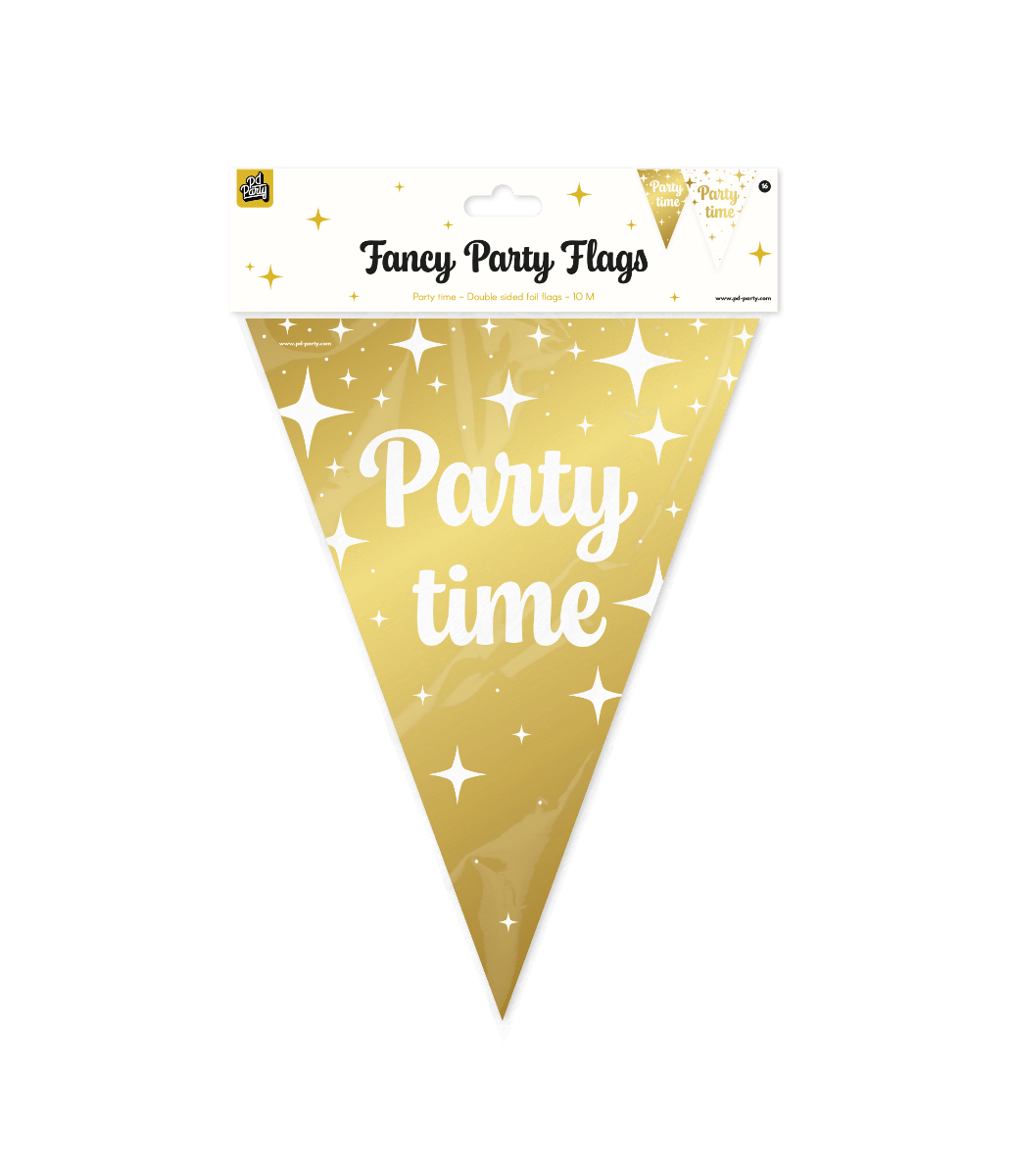 Foliowe flagi imprezowe Fancy Party Flags - Party time można idealnie łączyć z naszymi pasującymi balonami, a także z innymi artykułami imprezowymi z naszej szerokiej gamy, dzięki czemu możesz bez wysiłku stworzyć świąteczną i stylową atmosferę.