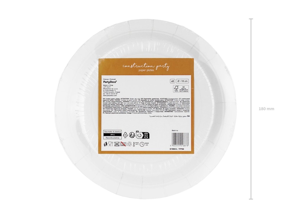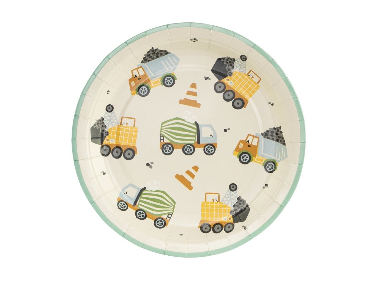 Papierowe talerzyki Pojazdy konstrukcyjne, różne kolory, rozmiar ok. 18 x 18 cm.