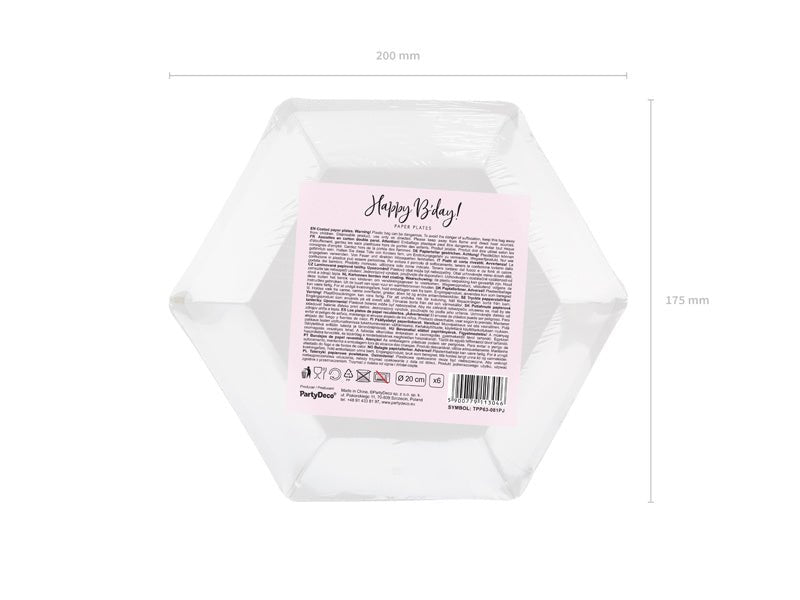 Talerzyki Happy Birthday Jasnoróżowe 20cm 6szt