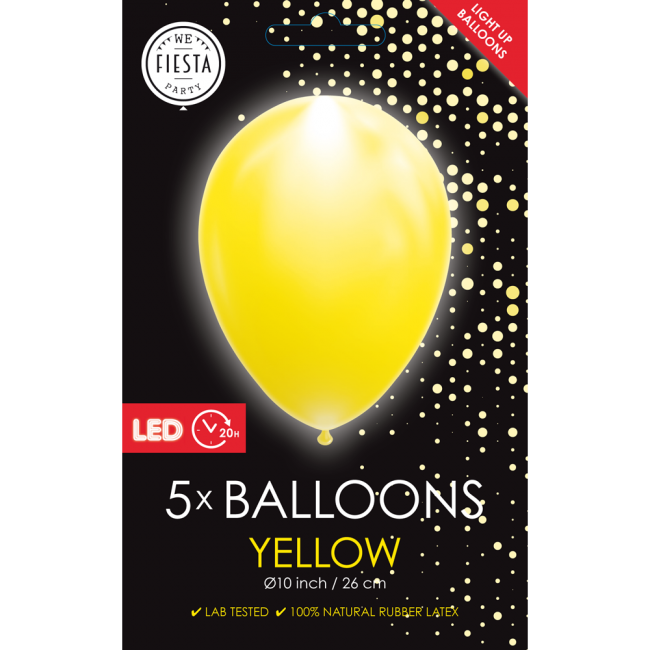 Zawartość opakowania: Yellow Led Balloons 26cm 5szt