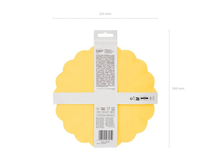Żółte talerze z postrzępioną krawędzią 22cm 4szt