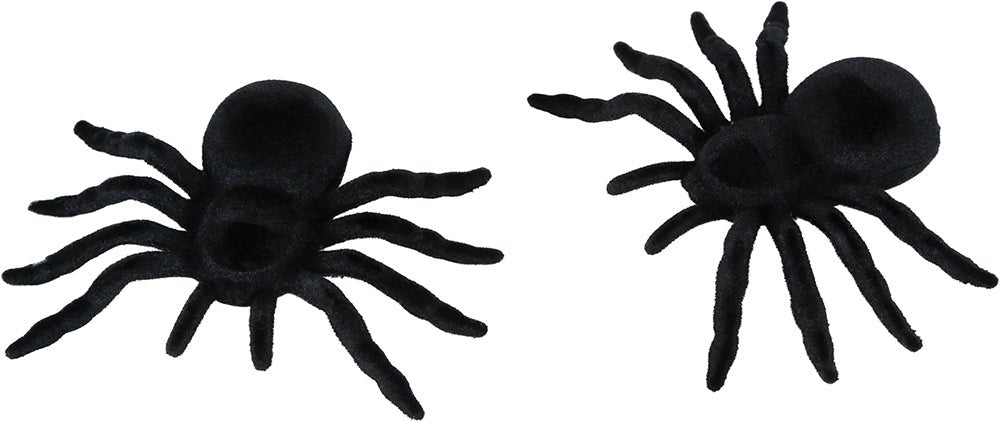 Dodaj upiorny akcent do swoich dekoracji na Halloween dzięki temu zestawowi 2 czarnych sztucznych pająków o wymiarach 10 cm. Wykonane z lekkiego PVC, pająki są bezpieczne w użyciu i łatwe do umieszczenia na stołach, parapetach lub w innych dekoracjach
